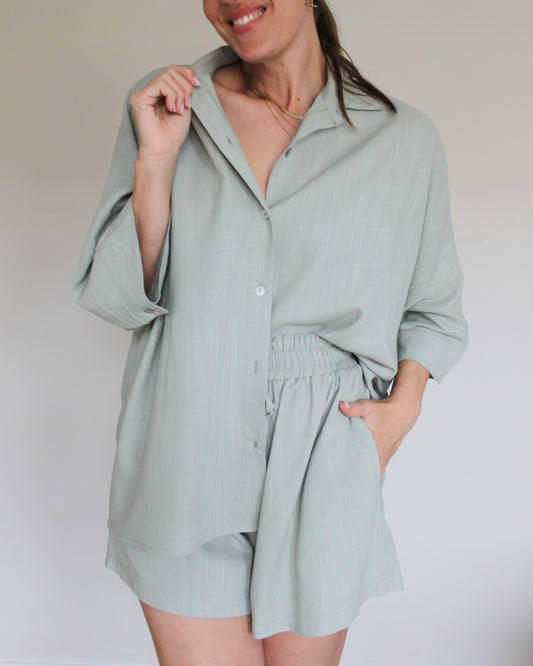 Ropa linen-blend short set (sage)