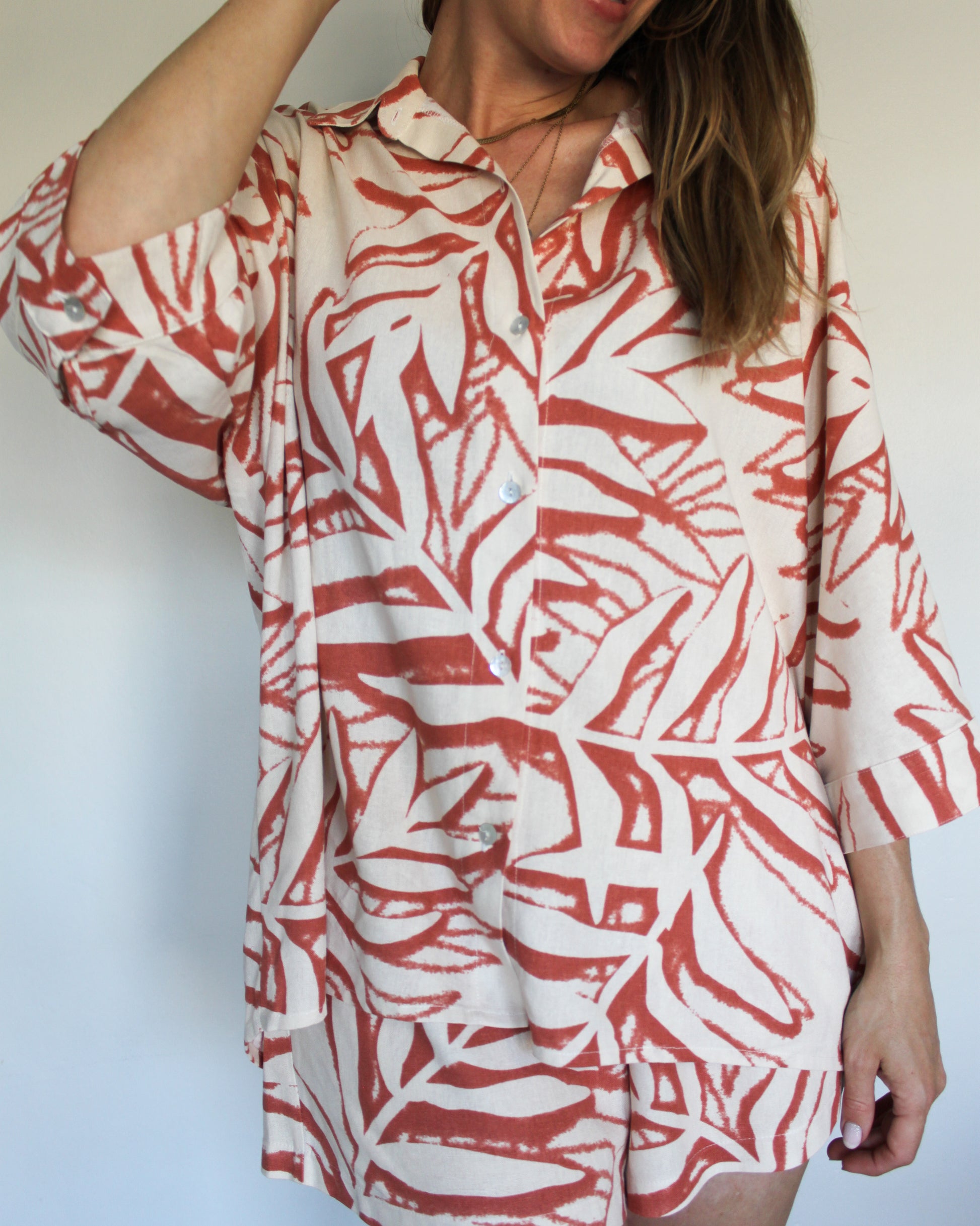 Ropa linen-blend shirt (rusty leaves)